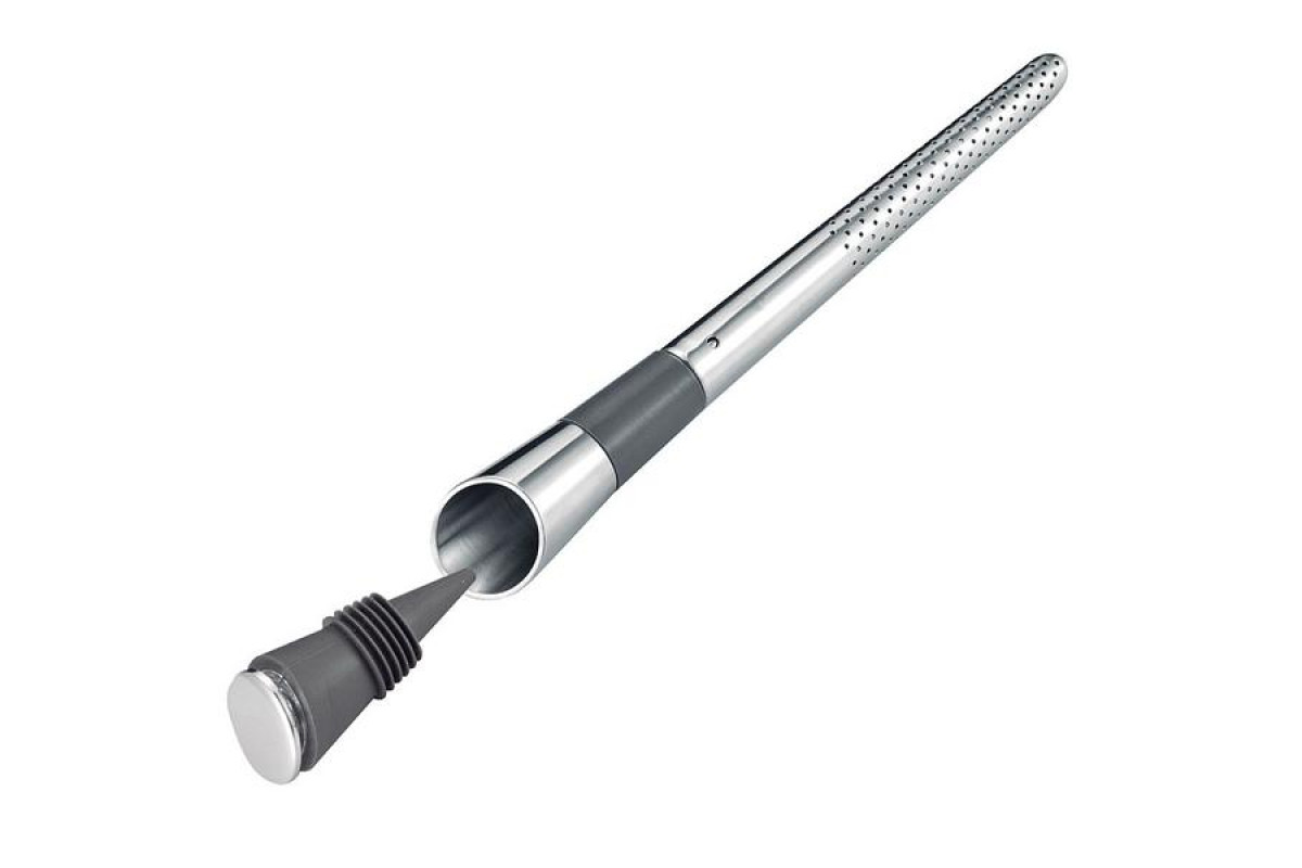стекло, Аэратор длиной 20см изготовлен из нержавеющей стали. Аэратор включает в себя выливной конус из нержавеющей стали, осадочный фильтр, который также отвечает за аэрацию вина, и пробка для бутылки.