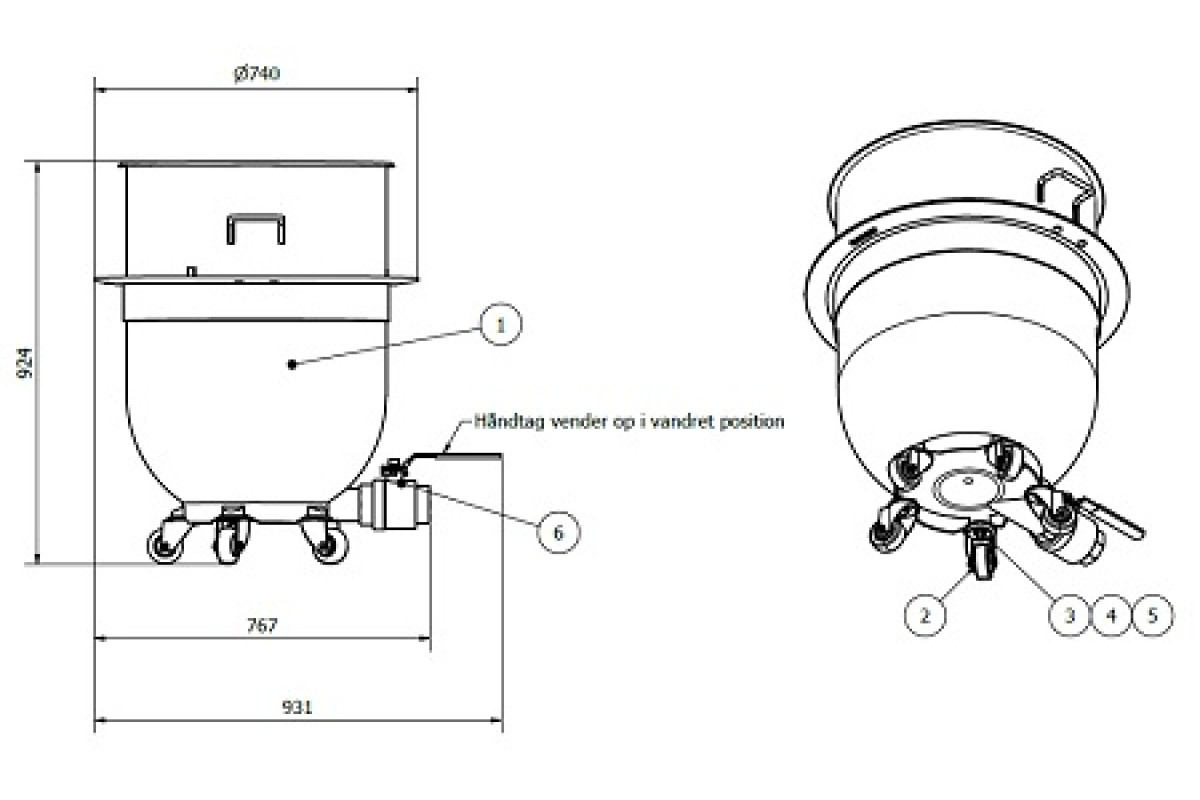 для AR200, дежа 200л. с нижней сливной трубой и колесами нерж.сталь