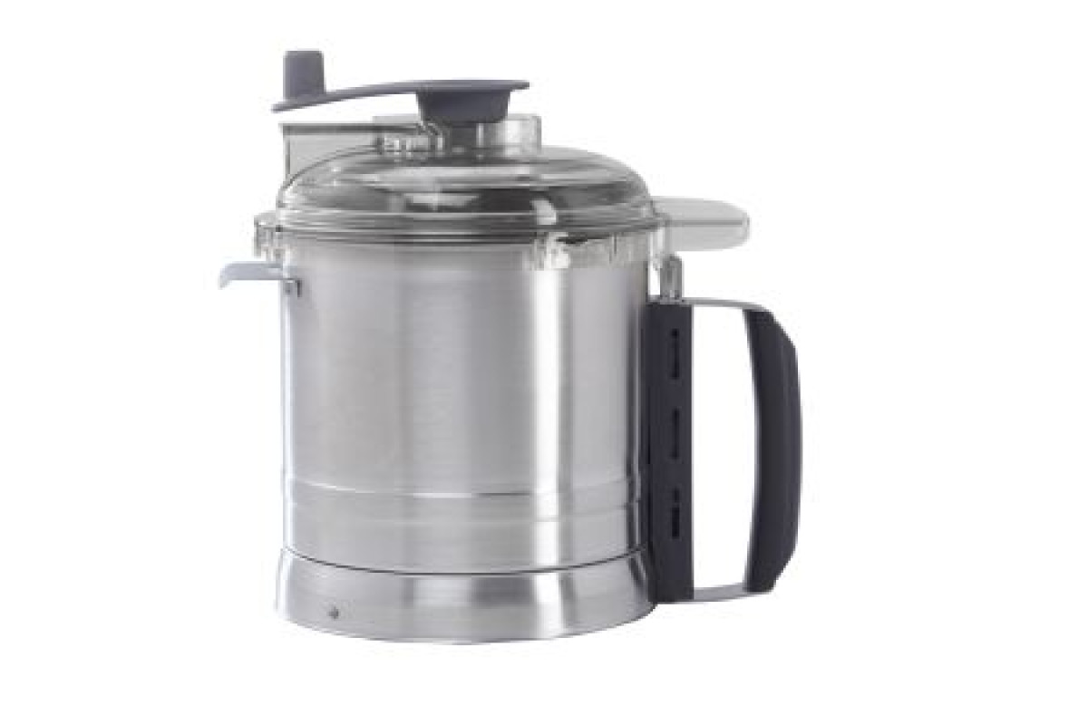 дополнительная чаша с ножом с мелкими зубчиками для ROBOT COOK, изготовлена из высококачественной пищевой стали, объём 3,7 литра, нож с двумя гладкими лезвиями и крышка со скребком входят в комплектацию