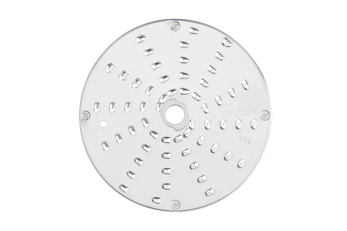 Устанавливается в рабочий отсек овощерезки на вал двигателя, используется для моделей CL50, CL50 Ultra, CL50 Gourmet, CL52, CL55, CL60, CL60 V.V., R502, R502 V.V., R752, R752 V.V., изготовлен из алюминия с покрытием Mineral+. Используется для шинковки моркови, сыра и сельдерея, 3 мм