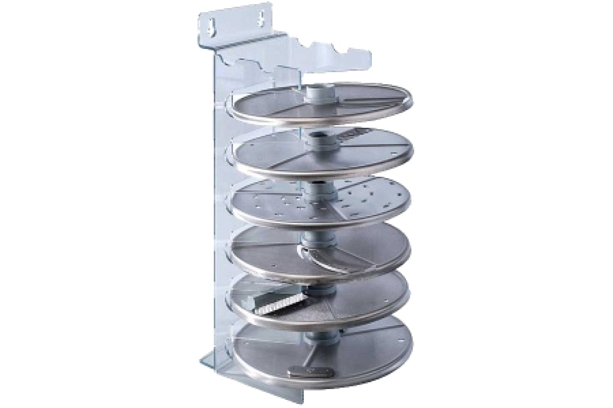 для дисков от R201-R402, CL20-CL30. Подставка предназначена для упорядоченного и гигиеничного размещения и хранения режущих дисков овощерезок. Подставка выполнена из поликарбоната.