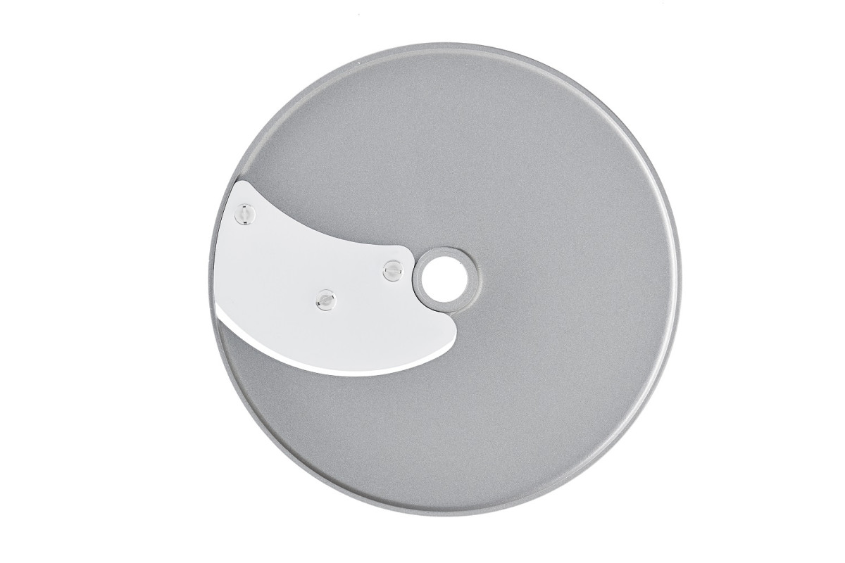 Устанавливается в рабочий отсек овощерезки на вал двигателя, используется для моделей CL50, CL50 Ultra, CL50 Gourmet, CL52, CL55, CL60, CL60 V.V., R502, R502 V.V., R752, R752 V.V., изготовлен из алюминия с покрытием Mineral+. Используется для нарезки томатов, кабачков, баклажанов, лука-порея, грибов, огурцов, перца, свеклы, салата, редьки на ломтики толщиной 4 мм