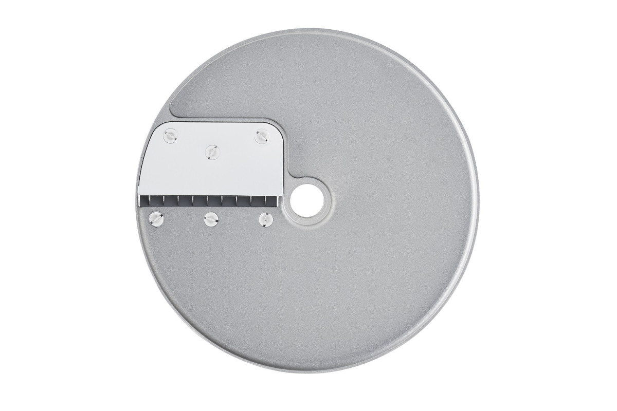 Устанавливается в рабочий отсек овощерезки на вал двигателя, используется для моделей CL50, CL50 Ultra, CL50 Gourmet, CL52, CL55, CL60, CL60 V.V., R502, R502 V.V., R752, R752 V.V., изготовлен из алюминия с покрытием Mineral+. Используется для нарезки картофеля на соломку размером 8 х 8 мм