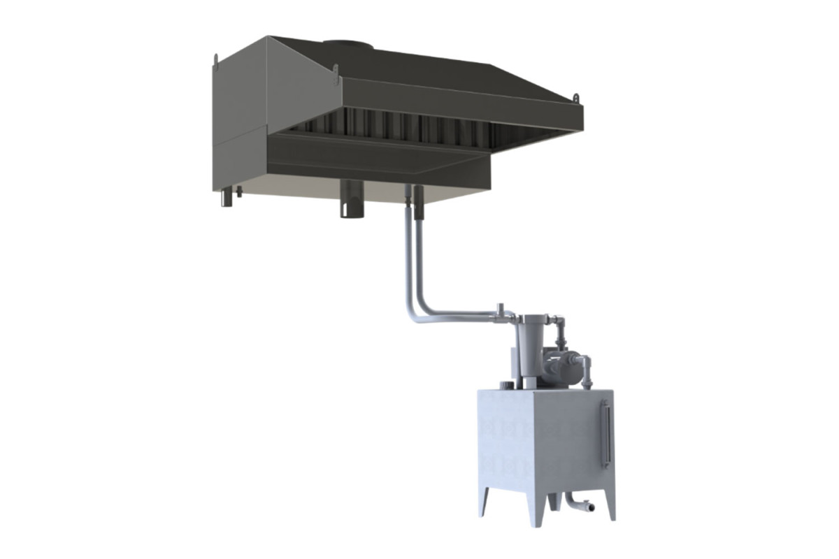 Зонт: Габаритные размеры: 1100х1265х790мм, Сухой вес: 47 кг, Вес с водой: 80 кг, Производительность: 3000 м3/час, Количество светильников: 1 шт, Количество лабиринтных фильтров: 4, Расход воды: 15 л/мин, Диаметр выходного отверстия: 400 мм, Температура газов на выходе из зонта,70*С, Подвод (слив воды) - G 1/2 (G1), Вход для вытяжной трубы печи 200мм, Сопротивление фильтров не более 245 Па, Насосная станция: Габаритные размеры: 500х500х900мм, Сухой вес: 24 кг, Вес с водой: 115 кг, Потребляемая мощность:750 Вт, Напряжение питания: 220, Производительность: 55 л /мин, Максимальное давление: 5 бар, Подвод (слив воды) - G1
