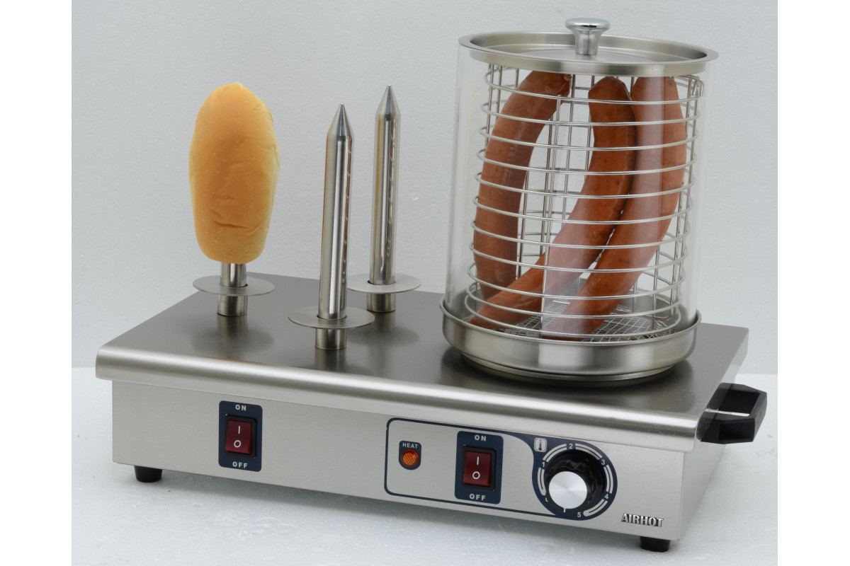 Профессиональный аппарат для приготовления и подогрева французских хот-догов. Он идеально подходит для оснащения точек быстрого питания в торговых центрах, кинотеатрах, на фуд-кортах, спортивных аренах и в уличных кафе. Устройство позволяет одновременно разогревать сосиски и булочки, обеспечивая быстрый процесс сборки и подачи популярного фаст-фуда. Его ключевые преимущества — компактность, гигиеничность благодаря использованию нержавеющей стали и простота в эксплуатации, что позволяет поддерживать высокую скорость обслуживания даже в часы пик.