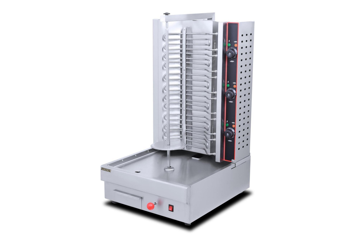 380Гриль для шаурмы AIRHOT GRE-80 позволяет обжаривать мясо и следить за процессом приготовления. Благодаря механизму с электрическим приводом мясо обжаривается равномерно.
