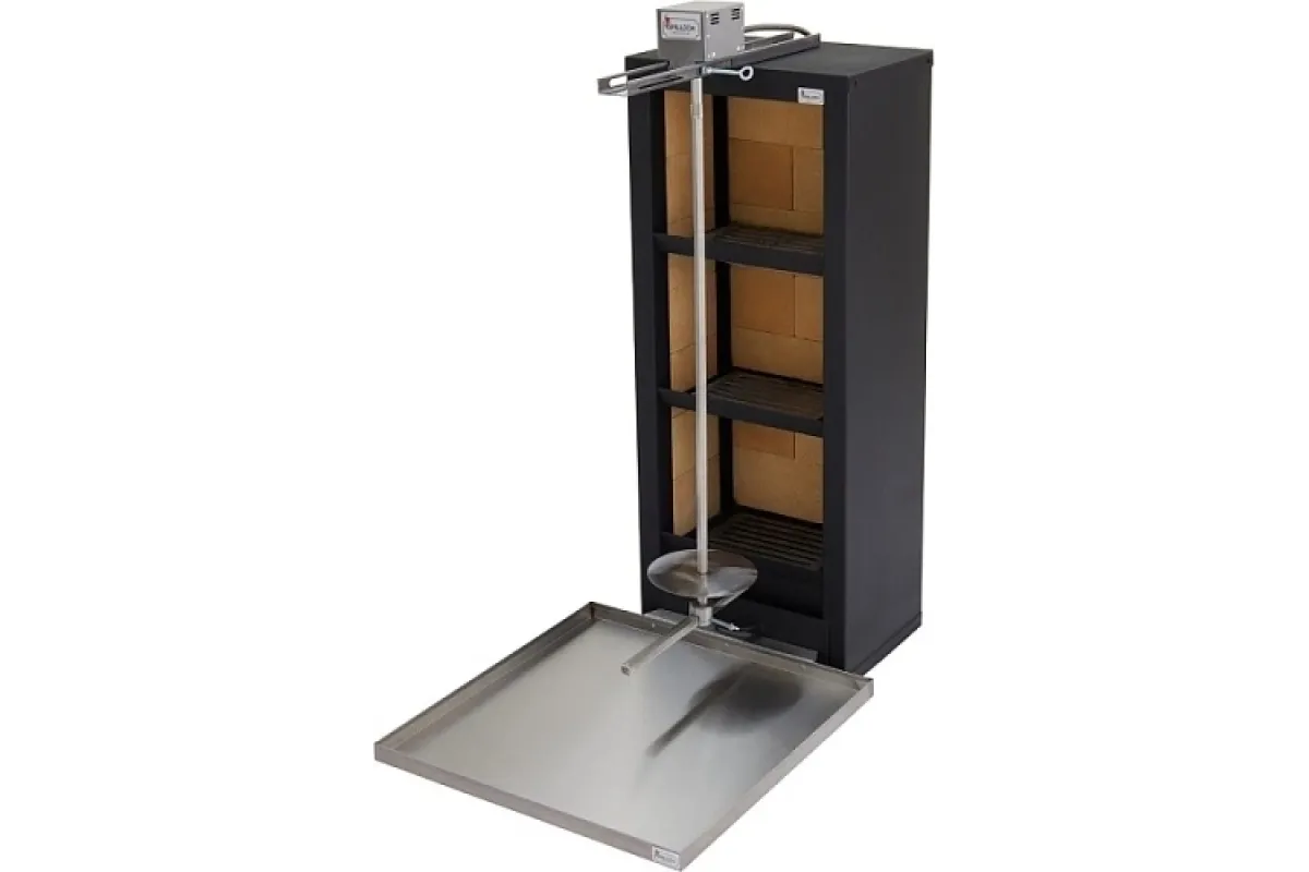 - Шампур и поднос из нержавеющей стали — Ключевые рабочие элементы устойчивы к высоким температурам и окислению, гарантируют гигиеничность и простоту в уходе, что критически важно для соблюдения санитарных норм в общепите.