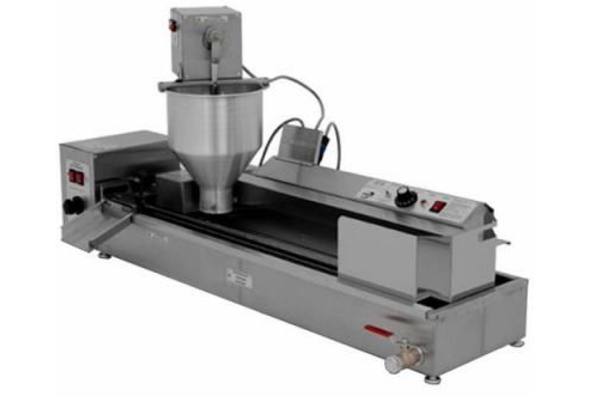 Пончиковый аппарат используется на предприятиях общественного питания и торговли. Оборудование в автоматическом режиме формует тестовую заготовку, отсаживает ее во фритюрную ванну, обжаривает по очереди с 2 сторон и выгружает из ванны готовый пончик. Благодаря плунжерным парам возможно изготовление пончиков различных размеров. В данном аппарате есть возможность изготовления дрожжевых и смесевых пончиков. Производительность дрожжевых пончиков — 450 шт/час, смесевых — 600 шт/час.Оборудован защитным датчиком и счетчиком производительности.