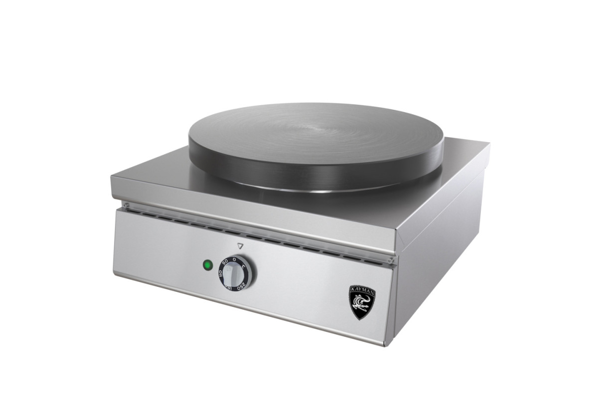 Заказ от 5шт. 406х444х220 мм, 2.5 кВт, 220В, С +50...+250С, 1-на конфорка, 30 блинов/час, диаметр конфорки 360 мм. Корпус аппарата- из нержавеющей стали. На нем располагается жарочная поверхность из жаропрочного чугуна. Нагрев поверхности осуществляется ТЭНом, расположенным снизу. В комплекте: деревянная лопатка для распределения теста и лопатка для переворачивания блинов.