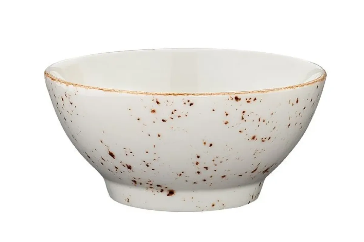 Объём: 0,45л. Диаметр: 140мм. Коллекция фарфора Bonna выполнена из профессионального твердого фарфора теплого сливочного оттенка. На изделях вручную нанесен декор в виде кофейной крошки. Нанесение декора делается под глазурь, в следствие чего, все изделия можно мыть в посудомоечной машине. Фарфор Bonna отличается своей прочностью, устойчивостью к сколам и механическим воздействиям, что делает его идеальным для профессионального использования. Материал: фарфор.