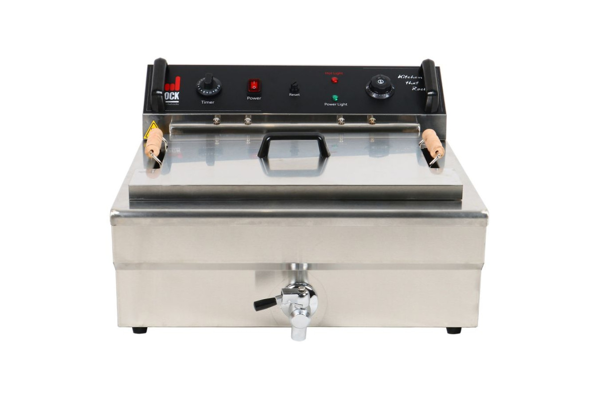 Чебуречница Rock Kitchen RK-MF48-2B предназначена для обжарки во фритюре чебуреков, беляшей, пирожков и других продуктов. Данная модель имеет одну ванну объемом 20 л. Один резервуар. Корпус изготовлен из нержавеющей стали.