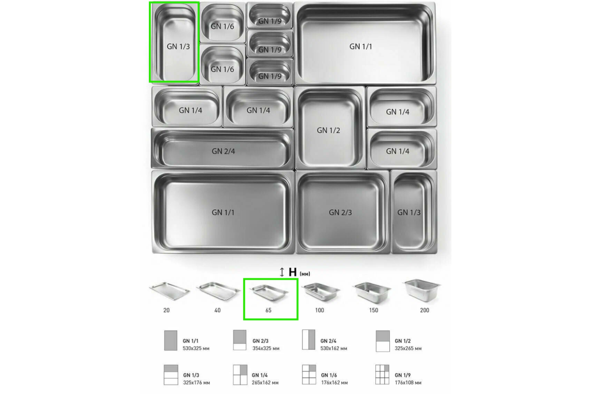| Стандарт размера | GN 1/3 |