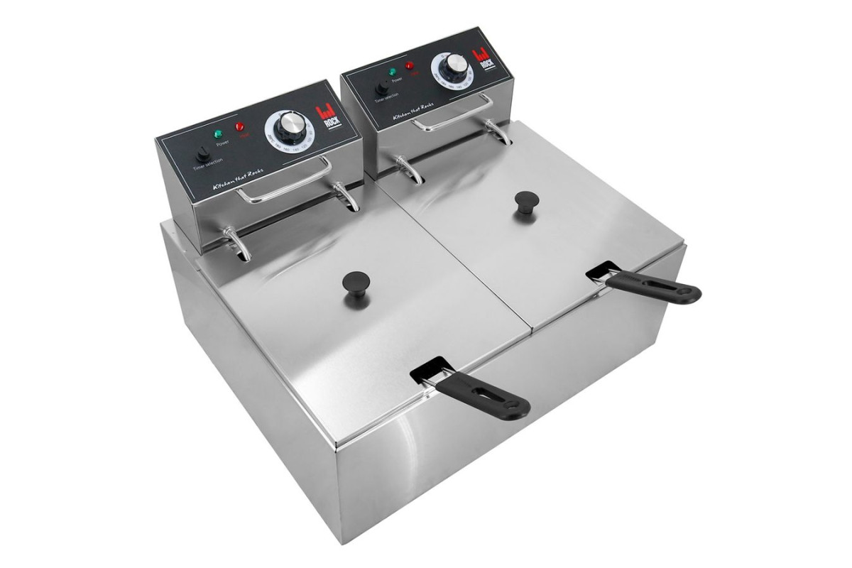 Фритюрница настольная Rock Kitchen RK-EF082-4B используется на предприятиях общественного питания для обжарки различных продуктов в большом количестве масла.