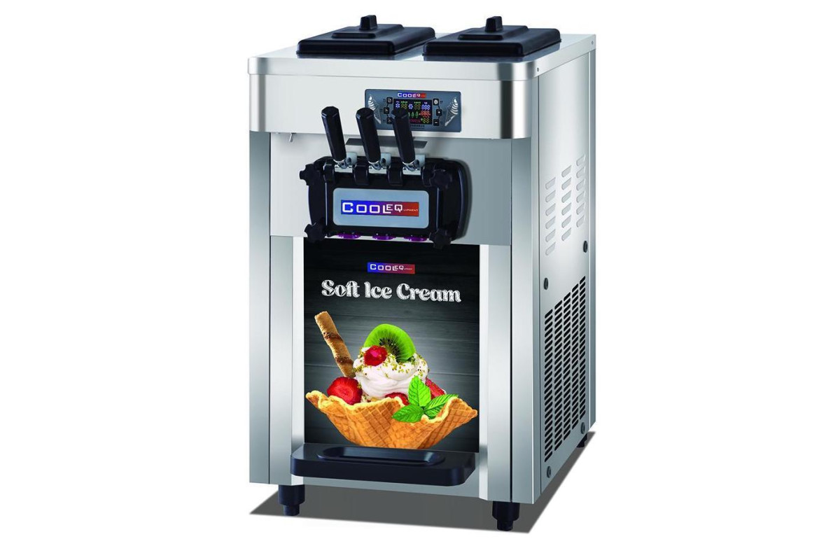 2 компрессора 3 рожок (2 вкуса + 1 смешанный) Регулировка твердости мороженого Счетчик порций Информативный дисплей Держатель для рожков в комплекте Габариты нетто (мм.): 750х540х850
