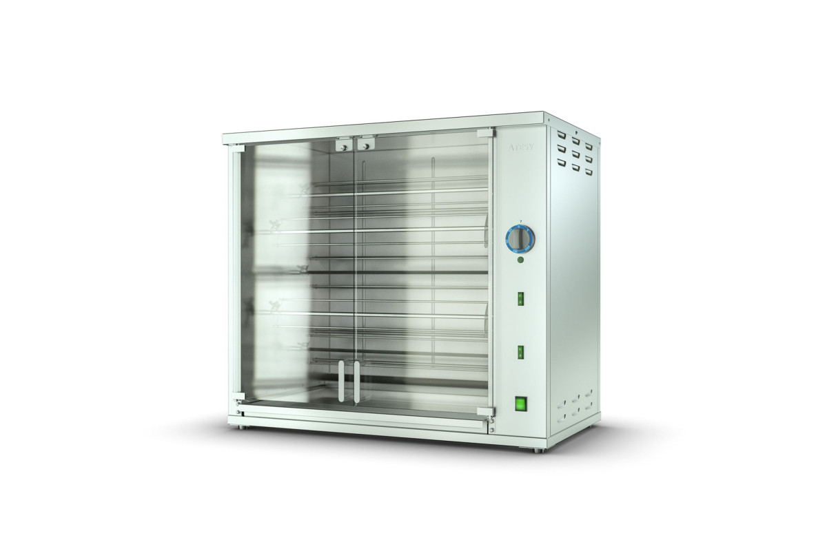 945х560х825мм, 7,3 кВт, 220 В, +50...+250С, шампурный, 5 вертелов (2 спереди, 3 сзади), на 25 кур