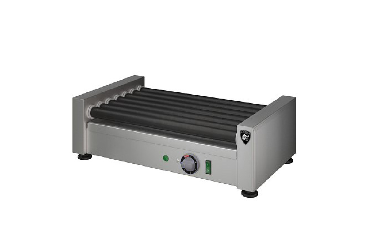 Заказ от 5шт. 536х320х170мм, 1,05 кВт, 220В, ролики из черной стали с антипригарным покрытием 7шт., длина ролика 450мм, кол-во одновременно приготавливаемых сосисок 5-15шт., время приготовления при полной загрузке около 8-14мин, время разогрева роликов до максимальной температуры 10 мин. Скорость вращения роликов 2 об/мин. Под роликами установлен поддон для сбора жира. Масса 10кг.