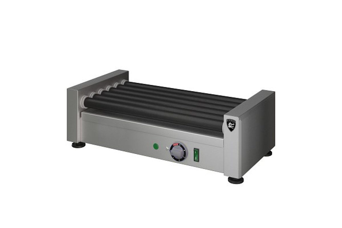 Заказ от 5шт. 536х280х170мм, 0,92 кВт, 220В, ролики из черной стали с антипригарным покрытием 6шт., длина ролика 450мм, кол-во одновременно приготавливаемых сосисок 5-15шт., время приготовления при полной загрузке около 8-14мин, время разогрева роликов до максимальной температуры 10 мин. Скорость вращения роликов 2 об/мин. Под роликами установлен поддон для сбора жира. Масса 8,8кг.