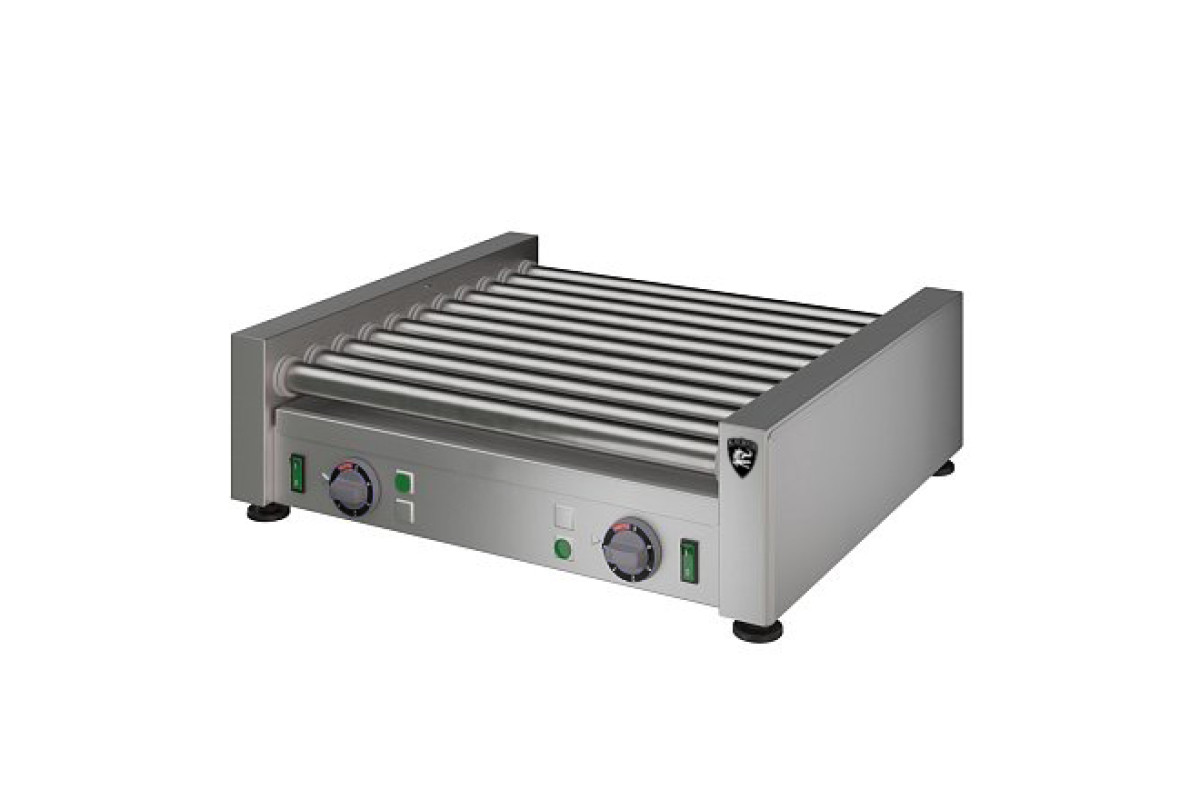 Заказ от 5шт. 536х485х170мм, 1,66 кВт, 220В, ролики из нержавеющей стали 11шт., длина ролика 450мм, кол-во одновременно приготавливаемых сосисок 10-30шт., время приготовления при полной загрузке около 8-14мин, время разогрева роликов до максимальной температуры 10 мин. Скорость вращения роликов 2 об/мин. Под роликами установлен поддон для сбора жира. Масса 15кг.