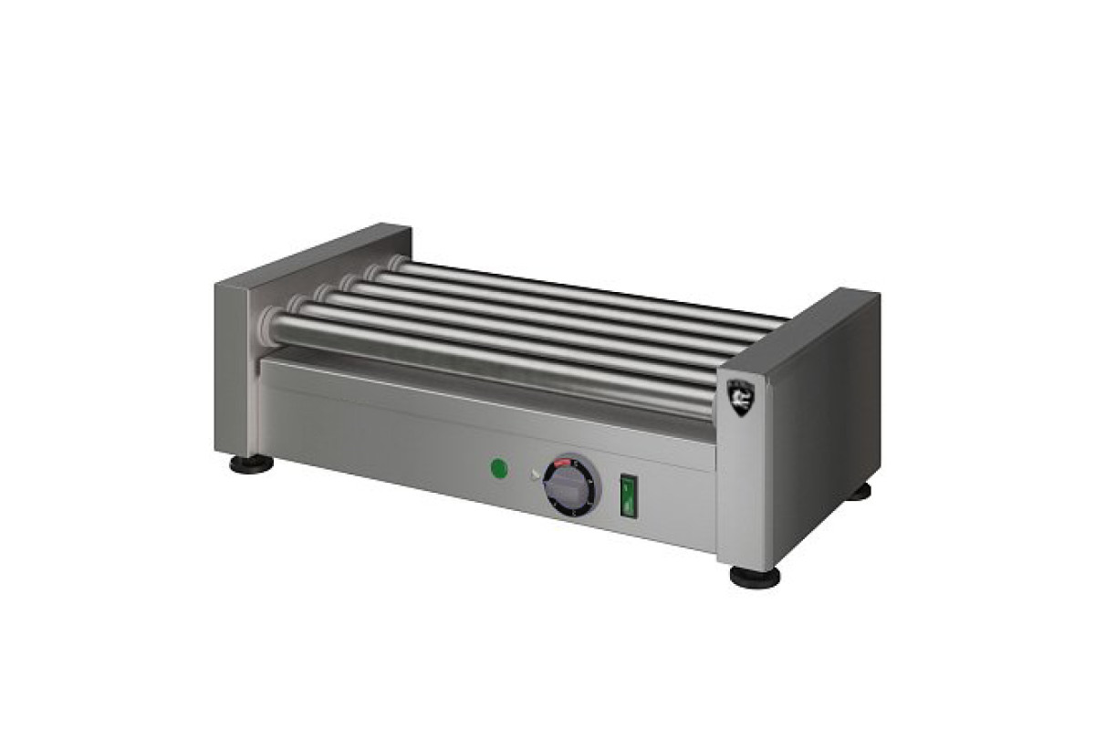 Заказ от 5шт. 536х280х170мм, 0,92 кВт, 220В, ролики из нержавеющей стали 6шт., длина ролика 450мм, кол-во одновременно приготавливаемых сосисок 5-15шт., время приготовления при полной загрузке около 8-14мин, время разогрева роликов до максимальной температуры 10 мин. Скорость вращения роликов 2 об/мин. Под роликами установлен поддон для сбора жира. Масса 8,8кг.