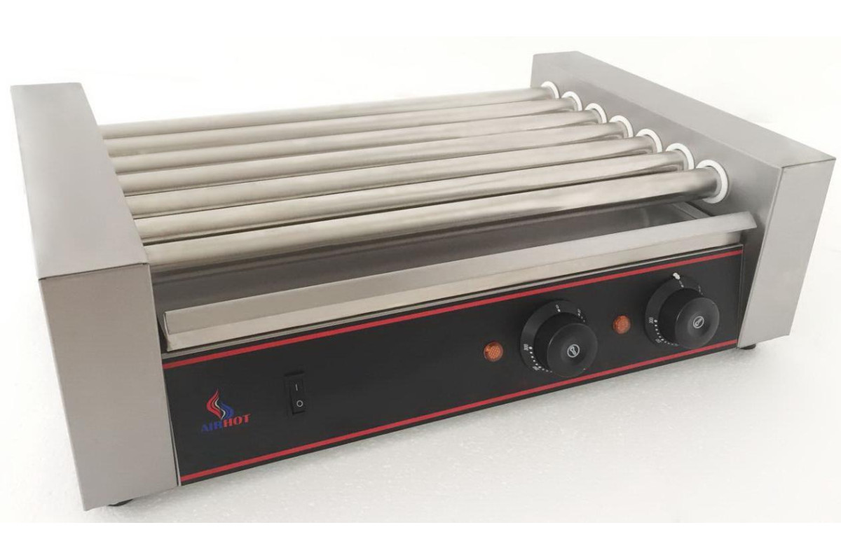 220Гриль роликовый AIRHOT RG-7 предназначен для обжаривания сосисок, колбасок, сарделек, а также мясных и рыбных палочек. Каждый ролик мощностью 0,15 кВт нагревается изнутри собственным тэном.