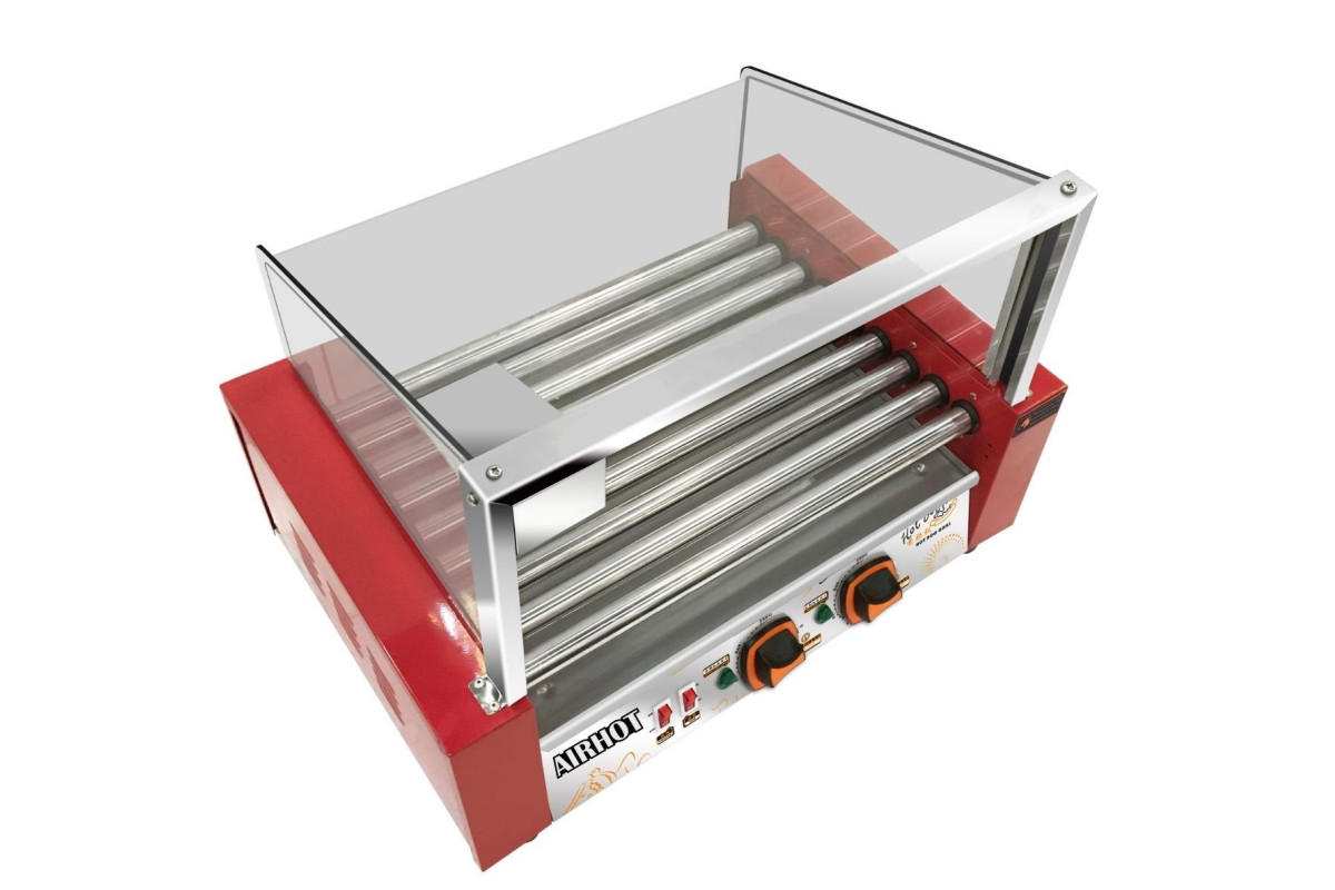 220Гриль роликовый AIRHOT аппарат для хот-догов с защитным экраном RG-9S подойдет для небольших предприятий фаст-фуда, торговых точек, расположенных в торговом центре.
