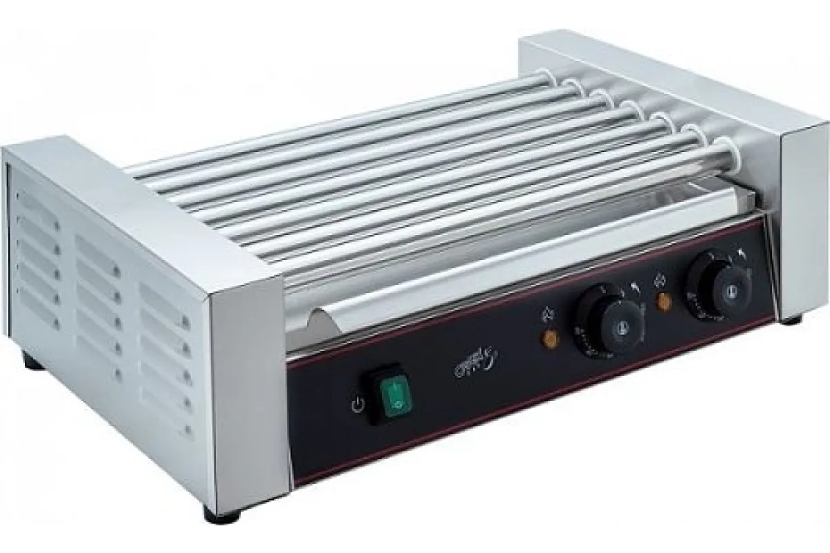 - 7 вращающихся роликов из нержавеющей стали — обеспечивают равномерное прожаривание сосисок по всей длине без переворачивания вручную. Повару не нужно стоять у гриля постоянно: загрузил продукт и занимаешься другими задачами.