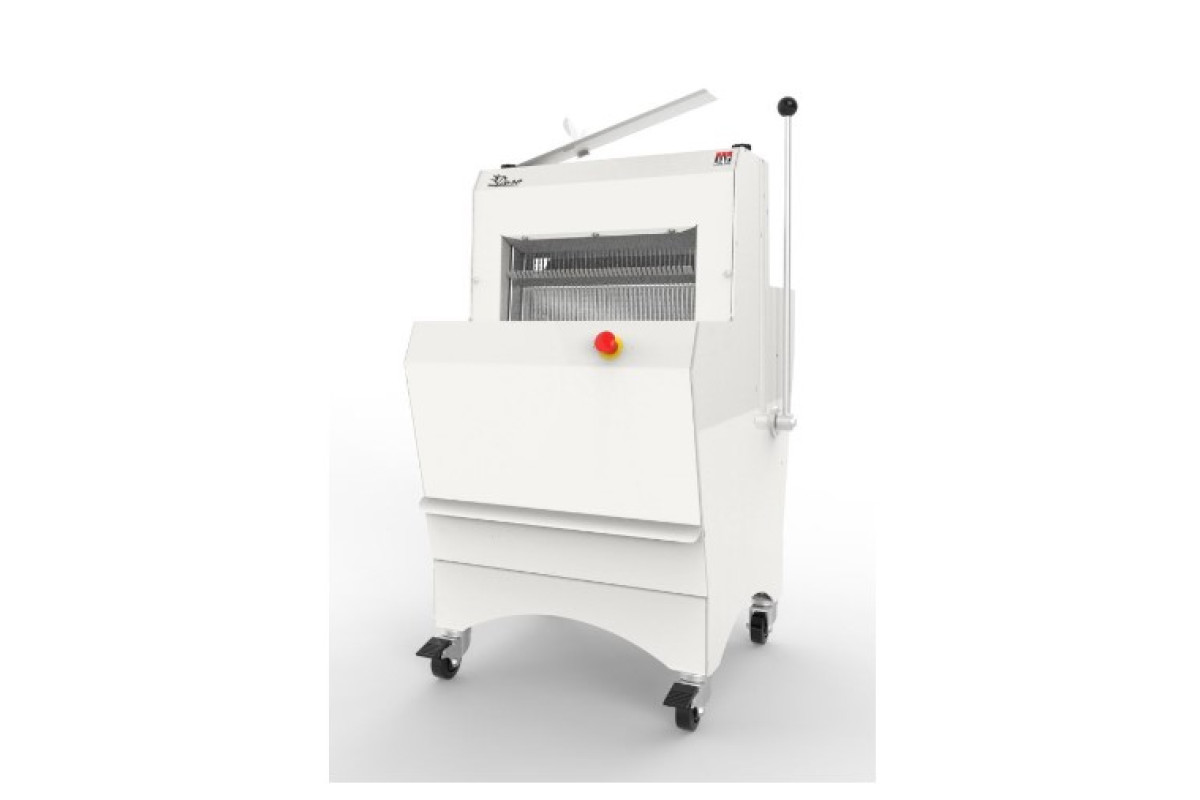663*760*1243 мм, 0,49 кВт, 380В/3Ф, напольная полуавтоматическая модель, нож стальной 13*0,5мм, максимальный размер изделия для нарезки 440*320*160 мм, высота толкателя 80 мм, цвет - белый. Для нарезки ломтиками 13 мм. Производительность до 200 нарезок/час. Рычаг плавной тяги обеспечивает более качественное управление усилием. Съемный бак для сбора крошек емкостью 18 л. Устройство для расфасовки в пакеты облегчает упаковку хлеба.