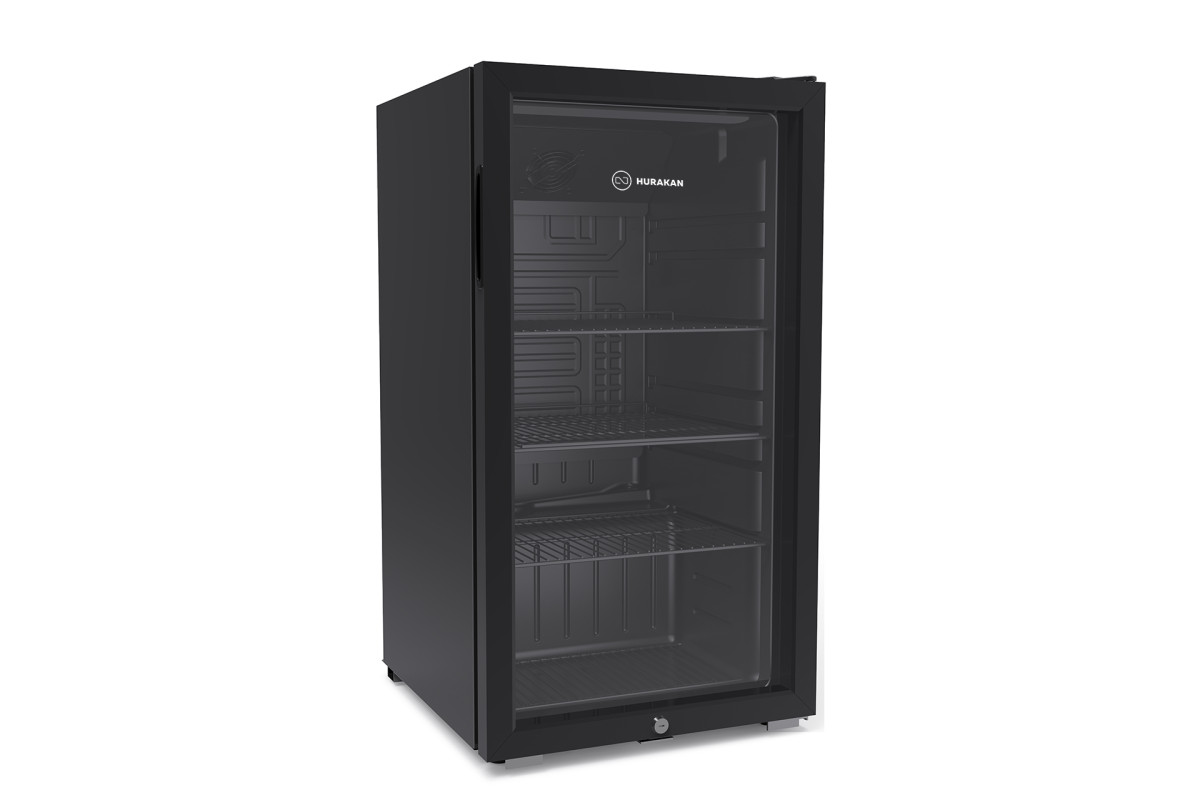 445*500*831мм, 220В, 31кг, объем 92л, 0~10С, статическое охлаждение с вентилятором, 4 полки, цвет черный, замок, подсветка, двухслойное закаленное стекло, регулируемые ножки