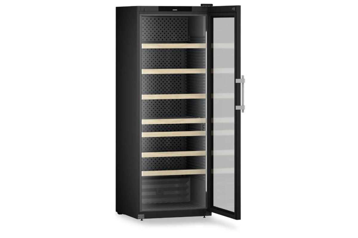 597x763х1884мм, 220В, 0,427 кВт-ч/24 ч, +5...+20С, 642л. вместимость по бутылкам Бордо до 284 шт., 7 полок, стеклянная дверь, цвет - черный.