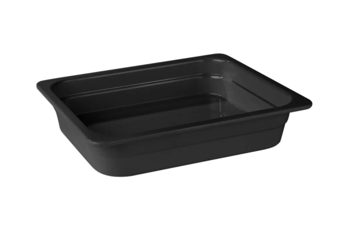 МеламинГастроемкость 22010. Материал: меламин. Выдерживает температуру от -20 °С до +70 °С. Запрещено использовать в микроволновых печах и на открытом огне. Размеры соответсвуют GN 1/2: длина - 32,5 см, ширина-26,5 см, глубина-65 мм. Цвет-черный.