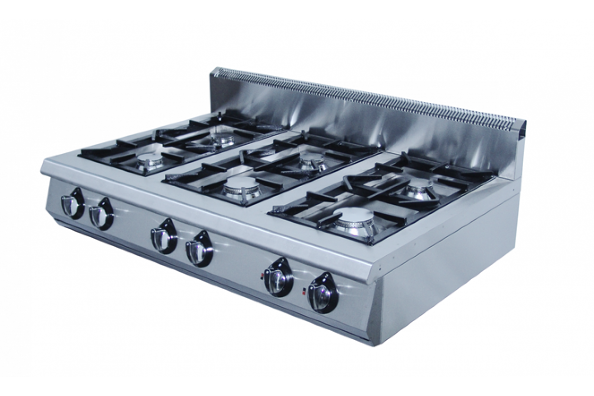 1180x800x320мм, 6 профессиональных горелок класса Heavy Duty, 4 горелки по 6.5 кВт, 2 - 9 кВт, газовая мощность 44 kW, газ/контроль, г.нетто , 136кг, брутто: 1330х950х620, 161 кг.