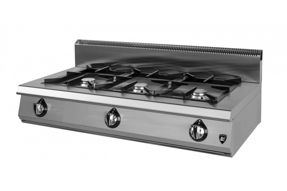 1120х600х330мм, 3 профессиональных горелки класса Heavy Duty, газовая мощность 19,5 kW, газконтроль, настольный вариант, полностью из н/стали, г.нетто , 50кг, г.брутто:1220х750х630, 75кг. 13,5 кВт