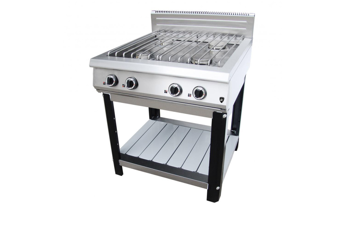 800х900х1050мм, 900 линия, 4 профессиональных горелок класса Heavy Duty -31 kW с запальной системой розжига, 2 горелки по 6,5 кВт, 2 по 9 кВт, уникальная решетка горелок из н/стали, автоподжиг, газ-контроль всех горелок, разборный стенд с нейтральной полкой, г.нетто , 120кг, г.брутто: 890х1000х650 мм, 145 кг . плита полностью из н/стали
