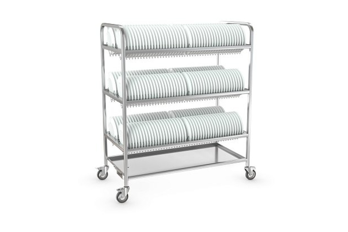 1200х600х1440мм, кол-во уровней 3шт., количество тарелок на двух уровнях 246шт. Расстояние между уровнями 400мм, нагрузка общая 120кг. Материал кассеты, пруток AISI304.