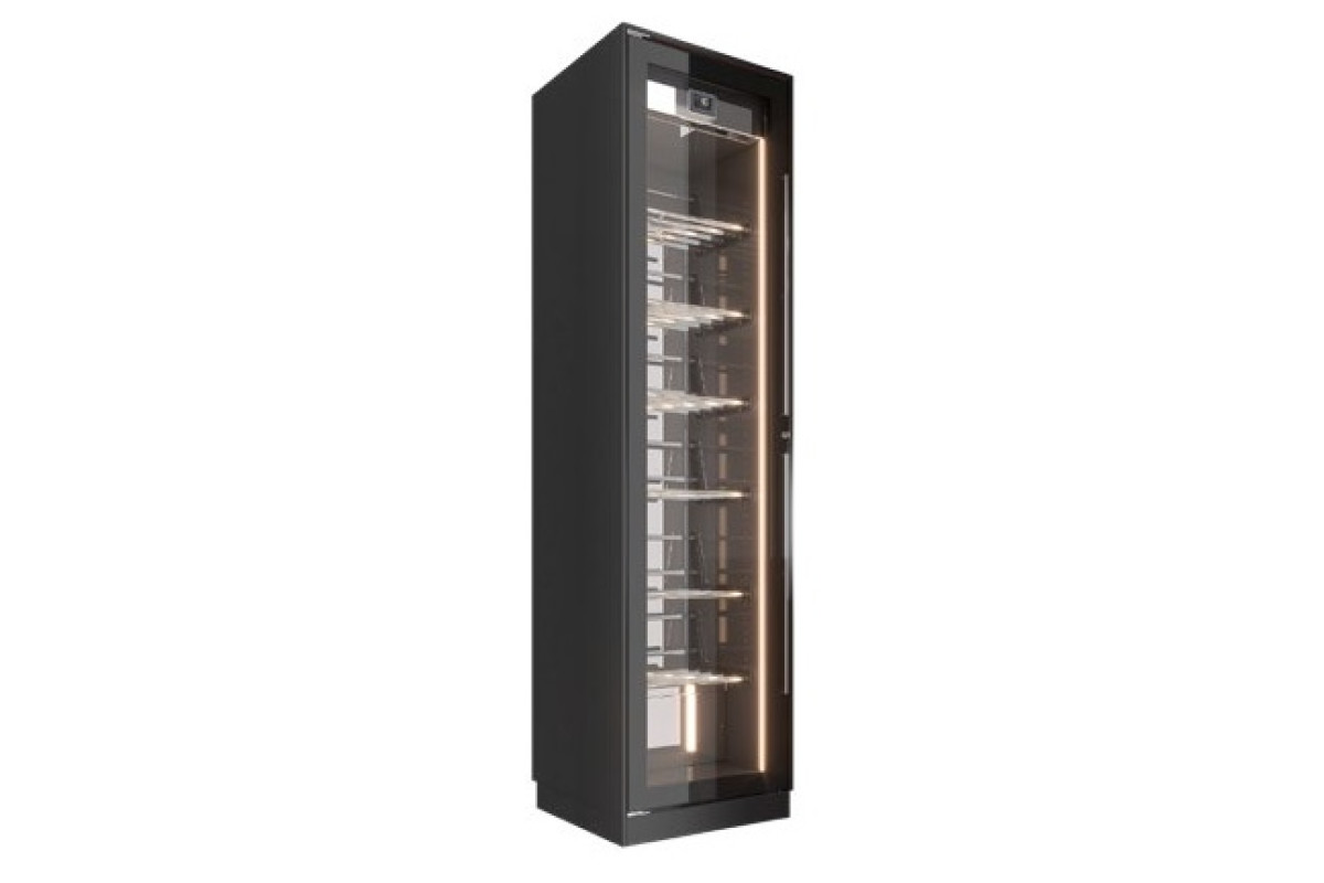 Код WYMVT + KRIPWYM; 700х700х2650мм, 0,6кВт, 220В, +4С, вентилируемое охлаждение, без контроля влажности, встроенный агрегат, 6 шт. плоских полок в комплекте. 216 бутылки max вместимость. Общий объем какмеры 630 л.
