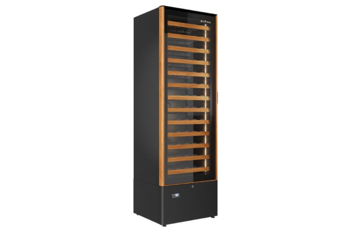 600x575x1867мм, 1кВт, 220В, +4...+18С, 440кг, вынимаемых ящиков с горизонтальными бутылками 13 шт., с встр.агр.R290, 5 бут. на ящик, дверь с деревянной вставкой.