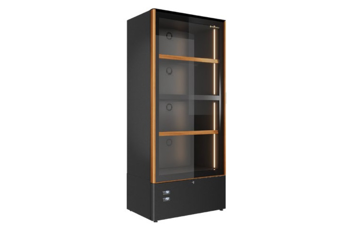 820x575x1867мм, 1кВт, 220В, +4...+18С, 440кг, полок для вертикальных бутылок 2 шт., с встр.агр.R290, 48 бут., дверь с деревянной вставкой.
