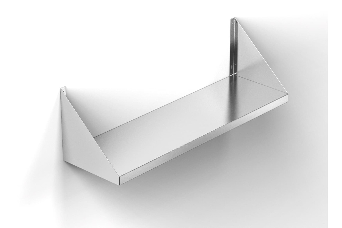 1500х300х300мм, Полка кухонная открытая настенная одинарная, выполнена из нержавеющей стали марки AISI 430, толщиной 0,8 мм. Крепление форма косынка