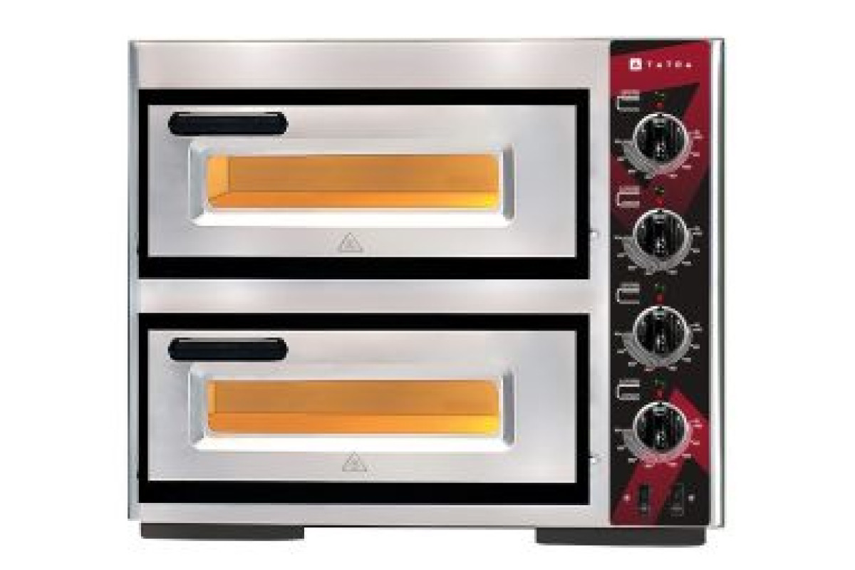230630х606х525 мм, 230В, 3,5+3,5 кВт, 1+1 пицца диам. 40 см, 2 камеры, размер камеры 400х400х100 мм, макс. температура 455С, дверцы с окном, подсветка