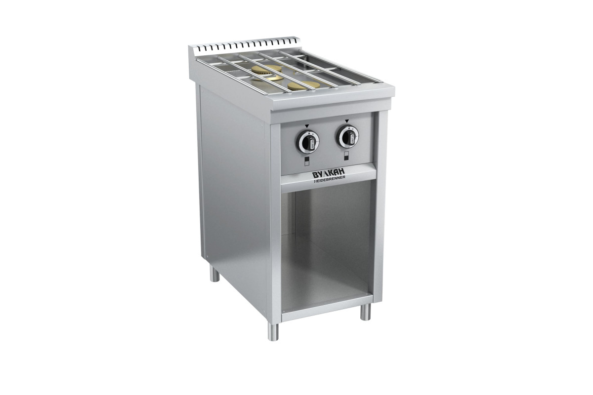 400х700х850мм,Плита из нержавеющей стали с 2-мя горелками по 6 кВт, съёмной решеткой из нержавеющей стали, В нижней части плиты имеется ниша для хранения кухонного инвентаря, газконтроль, работа на природном или сжиженном газе, герметичная столешница, ножки плиты регулируются по высоте, 2x6,0кВт, Расход газа: прир (сжиж)-1,22 (0,95)м3?ч (кг/ч), Брутто: 56кг