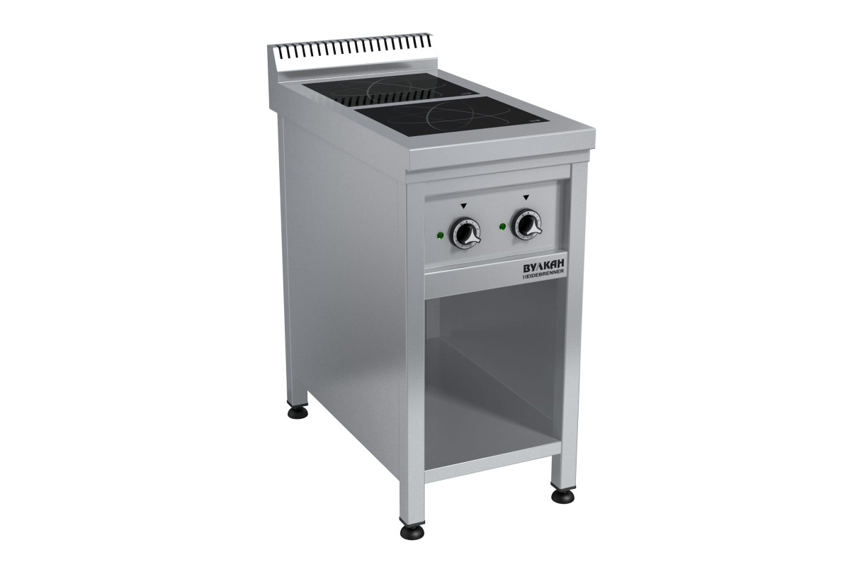 400х700х850мм, Индукционная напольная плита из нержавеющей стали имеет 2 мощные конфорки по 5кВт, выполненные из прочного стекла SCHOTT CERAN или EURO KERA. Мощность регулируется чувствительным 16-позиционным переключателем. Оснащена умной системой распознавания посуды, 2х5кВт, конфорка: 310х270см, толщина-4мм, питание: 380В