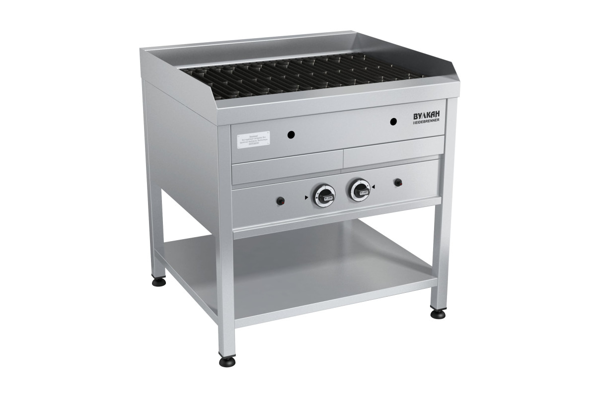 800х700х850мм, 2х12,1кВт, Расход газа: прир (сжиж)-2,46(1,91)м3?ч (кг/ч), Высота мангала-100мм, защитный борт-50мм, рабочая зона 790х475мм, Брутто: 118кг