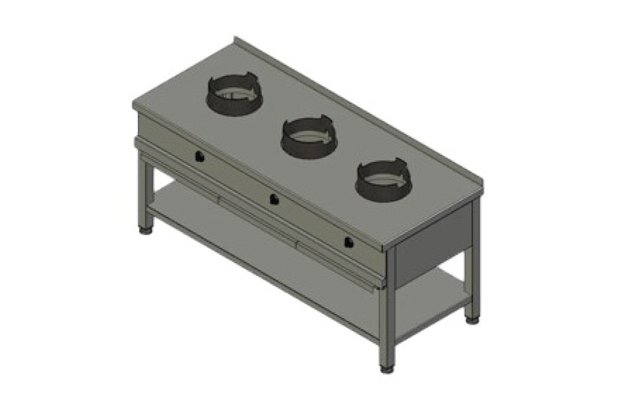 1850х700х800мм, Мощность горелок, кВт: 3х14,9, Тип горелки: бородавочная, Расход природного (сжиж.) газа, м3/ч (кг/ч): 4,54 (3,53), Резьба входного патрубка газопровода: G3/4-B, Газконтроль, запальная горелка, 3 кольцевые ВОК-насадки, пьезоподжиг