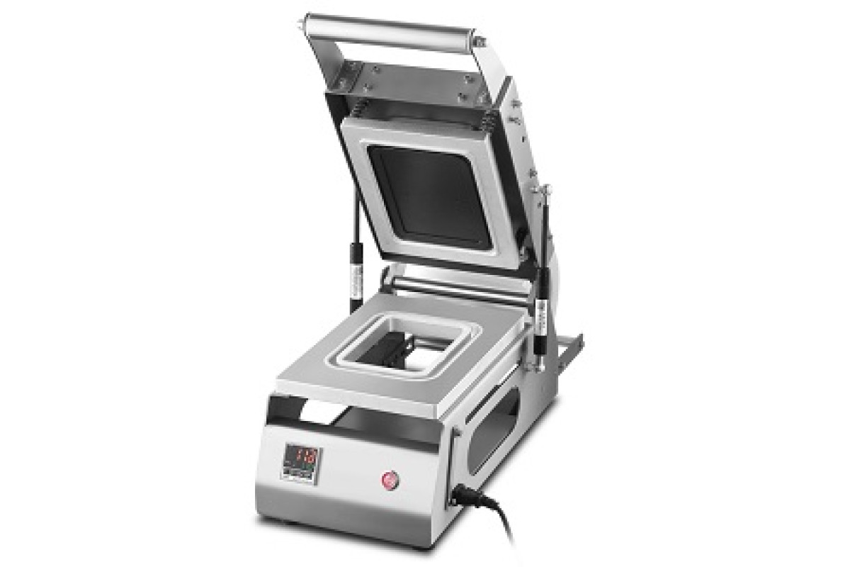 630х256х260мм, 220В, 0,5кВт, 15кг, 8 лотков/минута, несъемная матрица 142*92мм в комплекте, обрезка пленки по контуру, длина рулона пленки 180мм, диаметр рулона 160мм