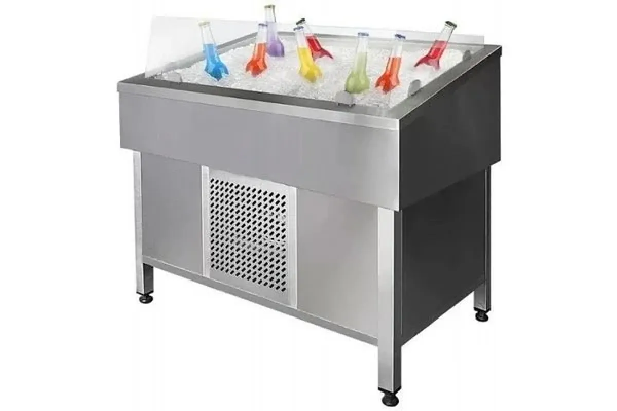Витрина для выкладки соков и фруктов на льду тип VJg, мод. VJg/1000 (стекло с 3х сторон, увлажнение)