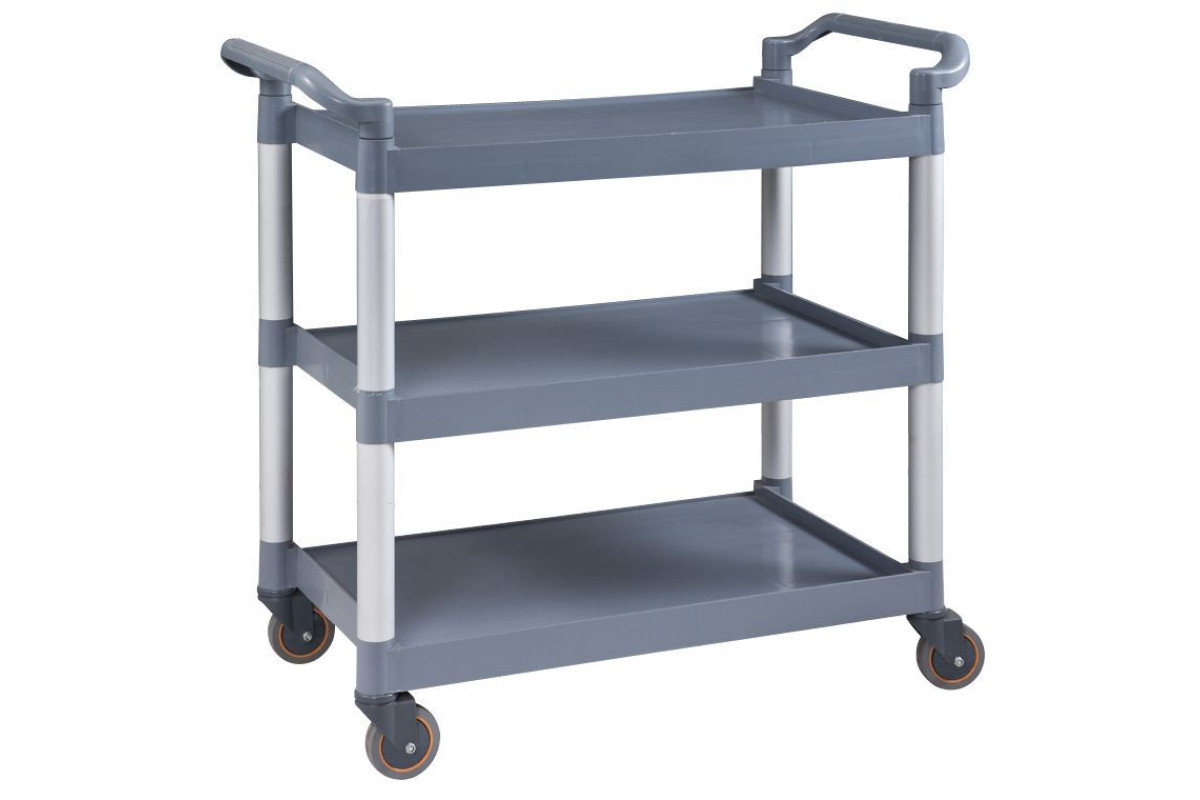 Тележка сервировочная Viatto изготовлена из пластика. Имеет 3 полки размером 790х495мм. Расстояние между полками 310мм.