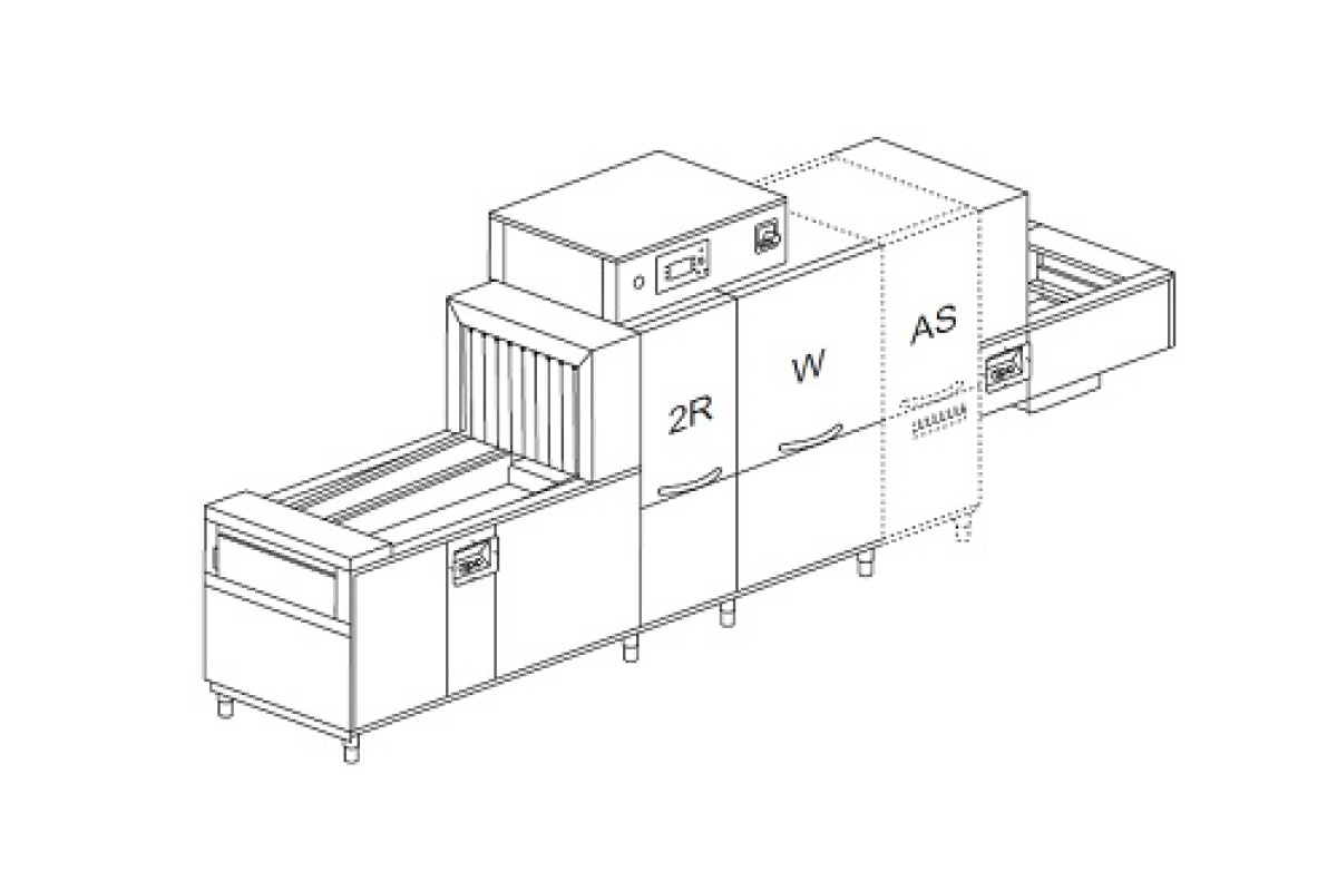 2100x805x1830/2120 H + 850мм по длине сушка DR189MT (9 кВт) ширина модуля 1500мм, 380В, 32,73 кВт, 5 скоростей 2 секции - мойка и двойное ополаскивание, 100-250 кас/ч, кассета 500*500 мм, диаметр тарелки 450 мм, DDE - дозатор моющих и ополас. средств, DWI - термоакустическая изоляция стенок, XP - усиленный бойлер для подключения к холодной воде, HR10 - теплорекуператор для подключения к холодной воде (потреб. энергии, t и влажн. воздуха в помещен. ниже, чем при доп. мощности), DRA189MT- сушка поворотная 180гр; корзины в комплекте: С40 для тарелок, C44 для бокалов, С43 для GN1/1, C47 для приборов, SX - движение СЛЕВА-НАПРАВО