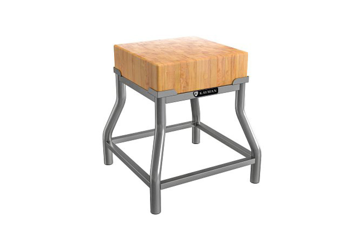 Габариты 650х650х700мм, столешница 500х500х150мм, материал столешницы натуральный бук, сварной каркас AISI 304, профиль ножек круглая труба диаметр 50мм. Поверхность колоды промаслена растительным маслом для исключения ее рассыхания. В тело колоды вмонтированы восемь штифтов, которые придают колоде дополнительную устойчивость к растрескиванию. Каркас колоды сварной.Колода разрубочная предназначена для разрубки полутуш, для заготовки мясной кулинарии – нарезки-Антрекотов, шницелей и др. полуфабрикатов. Колода может использоваться в цехах предприятий общественного питания, в залах специализированных магазинов, супермаркетах для разделывания мяса. Масса 46,8 кг.