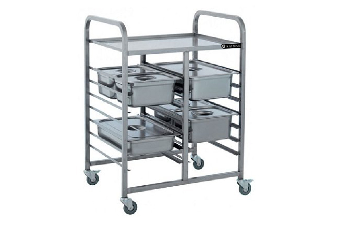 750х580х1060мм, кол-во уровней 7, расстояние между уровнями 80мм, максимальная распределенная нагрузка общая 150кг, максимальная распределенная нагрузка на одну полку 20кг. Материал полки, направляющих AISI304 0,8мм, материал стоек AISI 304, профиль квадратная труба 25х25мм, 2шт. опоры без тормоза, 2шт. опора с тормозом, диаметр поворотных колес 75мм. Масса 18,5кг. Сварная конструкция.