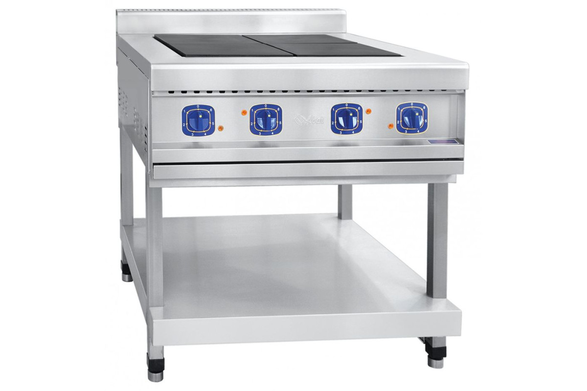 Плита электрическая четырехконфорочная без жарочного шкафа Abat ЭП-48П на подставке предназначена для приготовления первых, вторых, третьих блюд в наплитной посуде, а также для жарки полуфабрикотов из мяса, рыбы, овощей и выпечки мелко штучных кулинарных изделий.